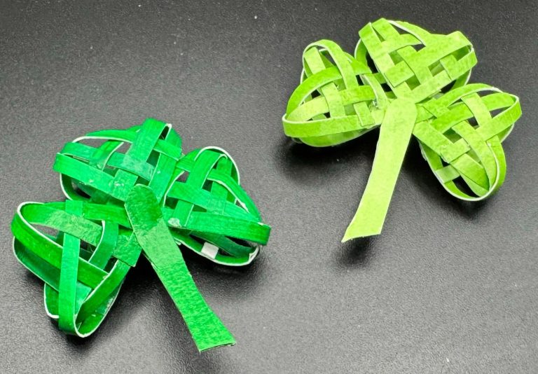 These shamrocks were inspired when I had a pile of Valentines colord little hearts, and 3 of them sort of arranged themselves like a shamrock. Fun!