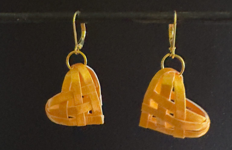 I adapted this deisgn from a decoration that I bought at the NC State Fair many years ago. It was woven with oak splits, and I enjoyed having it hanging in a window until it got very dry and delicate and broke during one of our moves. By then I had developed a way to make these in a number of sizes, and these are the smallest.